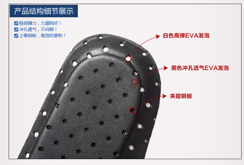 bocan功能防护鞋垫 防穿刺 钢板打造 透气 劳保鞋垫 防刺穿